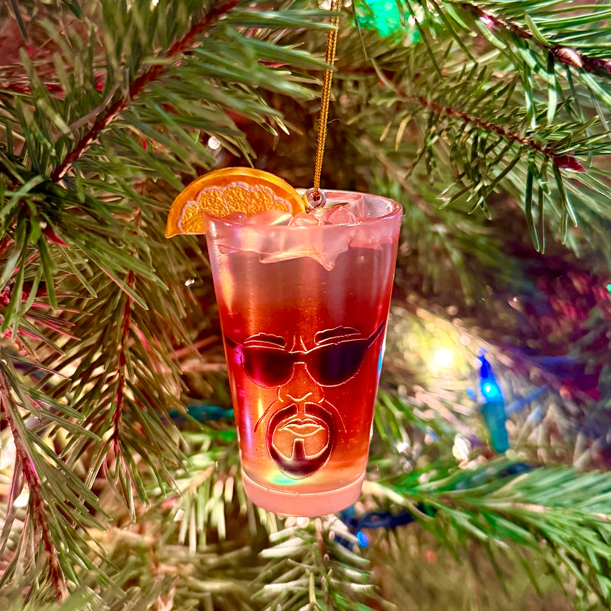 A glass of iced tea… that looks like Ice-T! Complete with a lemon wedge on the rim, cool shades, and a goatee, this ornament is the ultimate pun for your holiday tree.